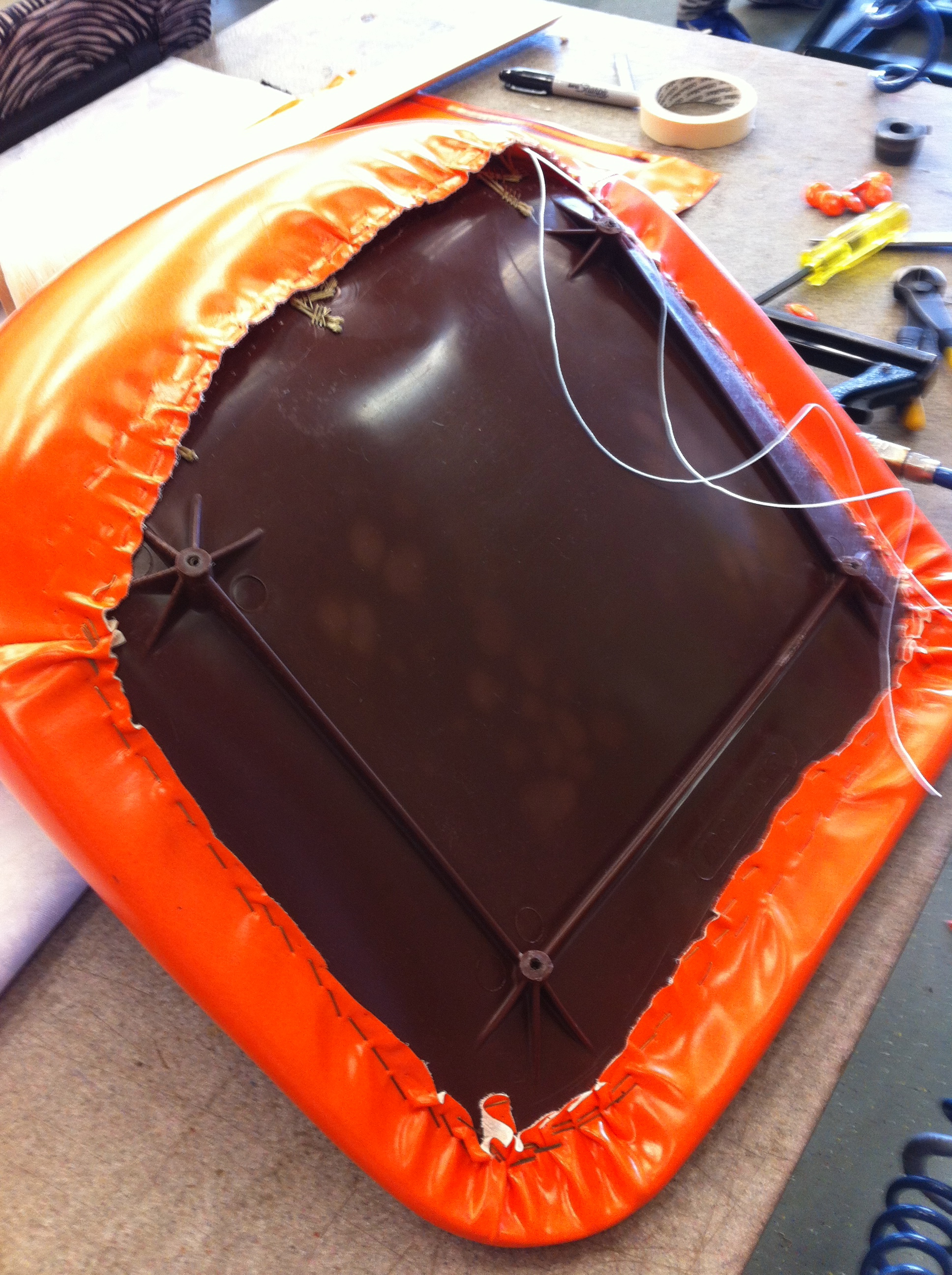 Now the ottoman is ready to be used again. The client can’t believe the transformation.