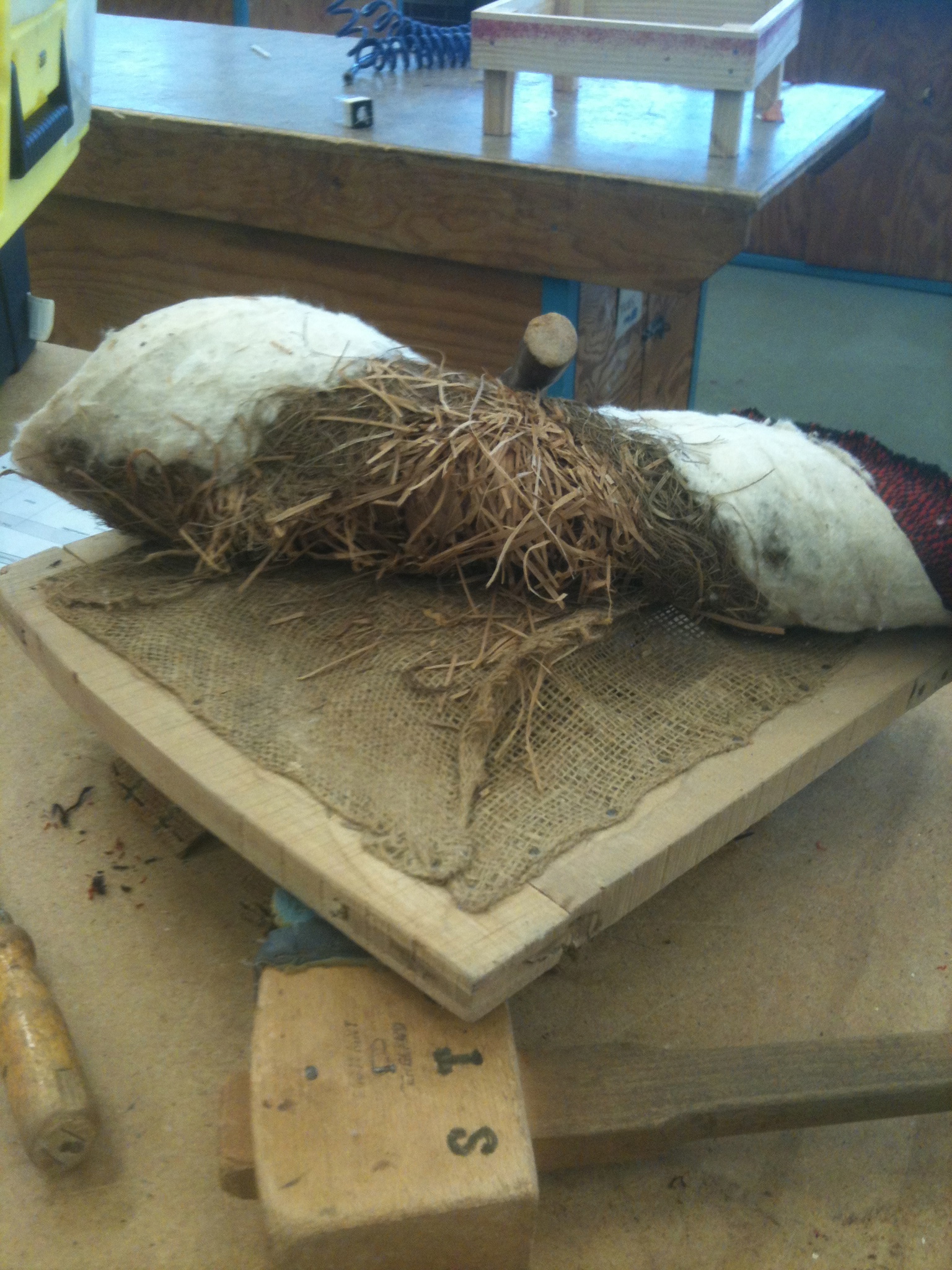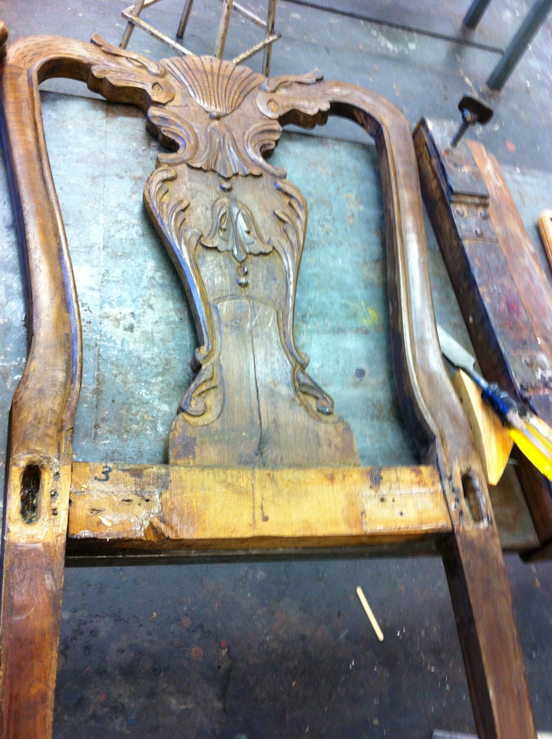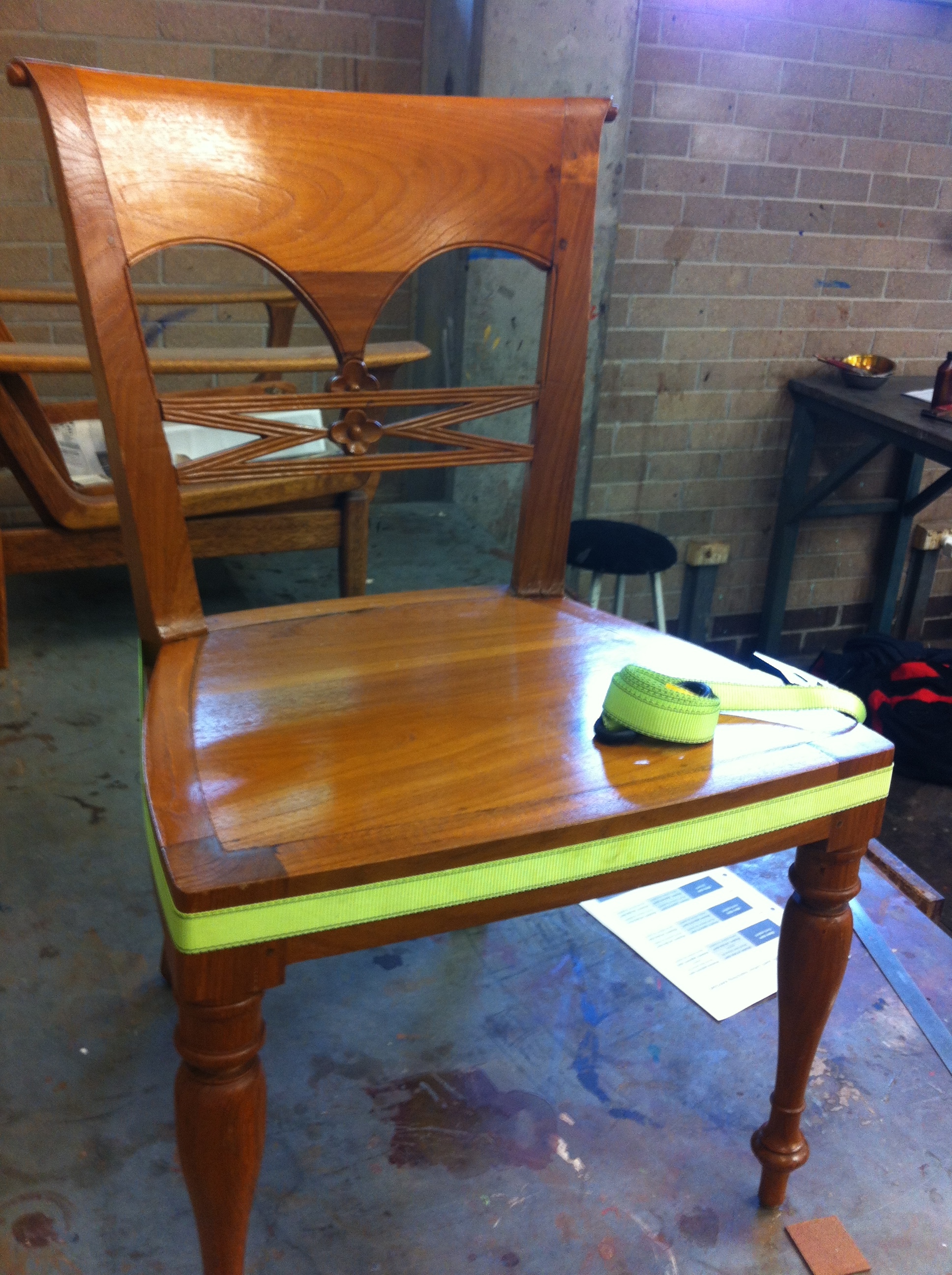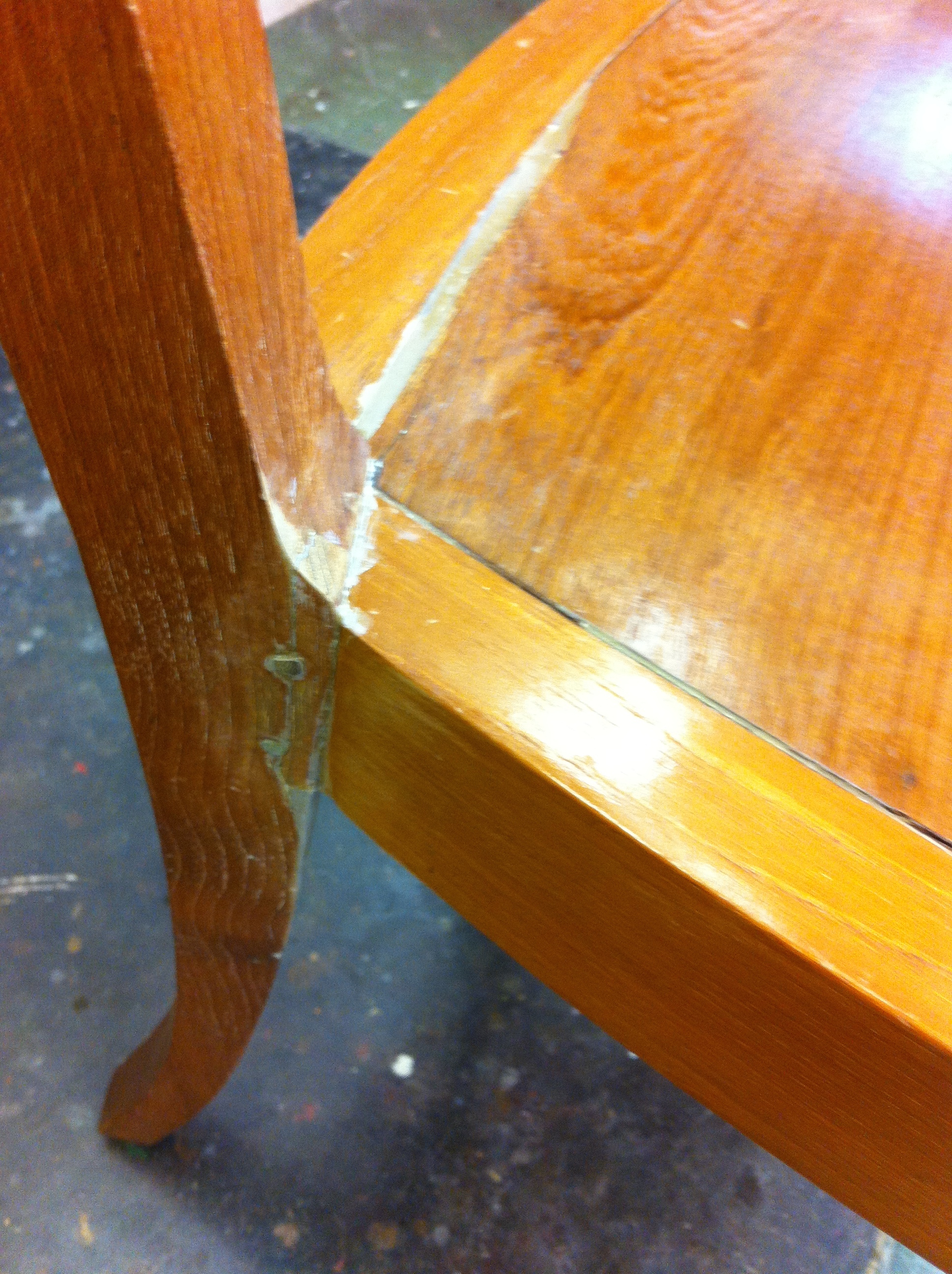 After a friend told me about the chair I said I would try to fix it for her. Time to put those lessons from Furnishing Finishing course into use.